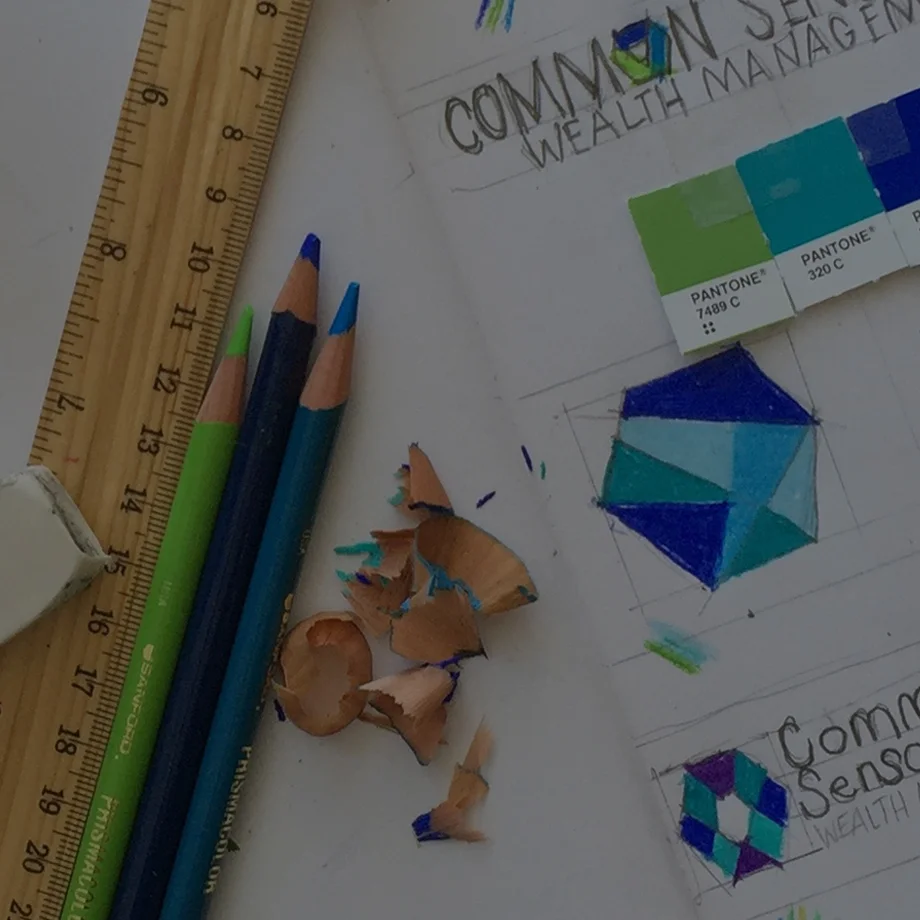 Sketches enable a fluid exploration of shapes and colors. In this case, I used a hexagon as a starting point to symbolize the harmony and dependability that this financial firm wanted to portray. It allowed for a concrete start when shifting to the digital design of this logo.