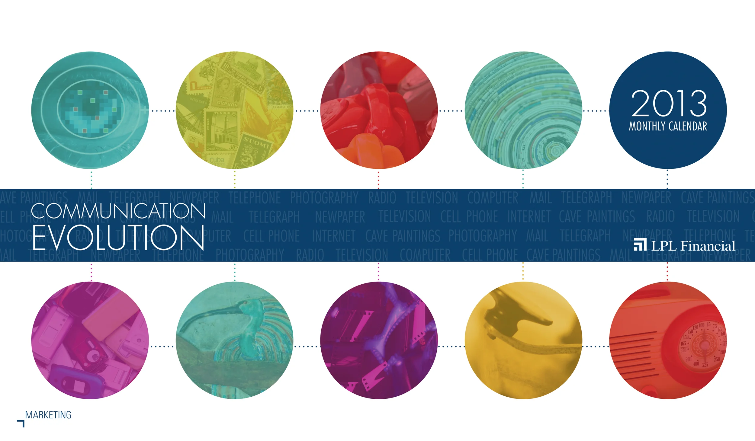 Colorful stylistic photography and content relating to the subject illustrate the history of communication from cave paintings to the Internet. This was a corporate internal printed piece distributed to the marketing team.